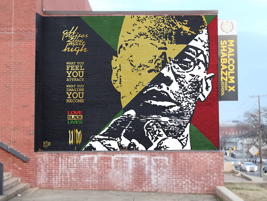 UNO mural concept for Malcolm X Shabazz H.S. Newark N.J.